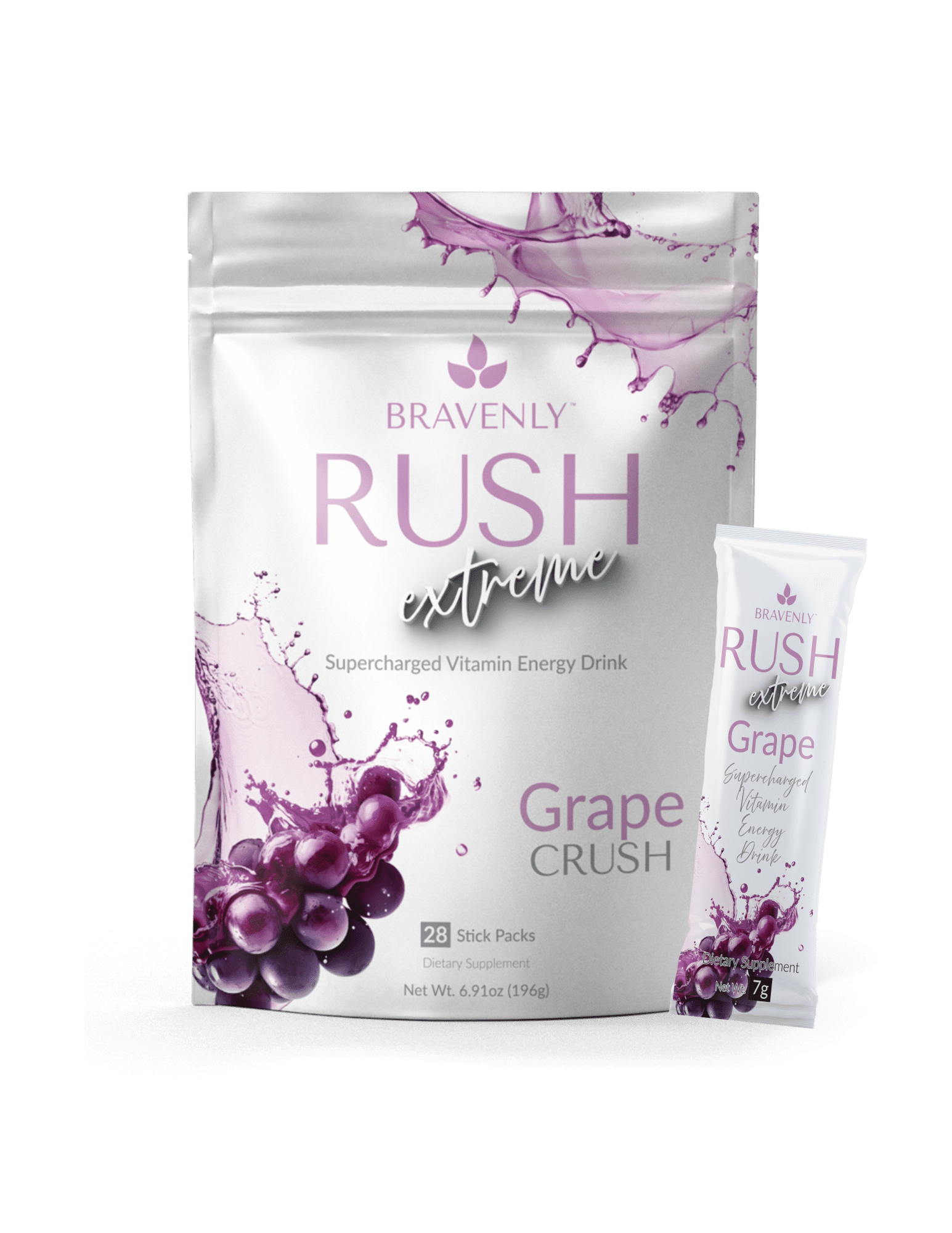 Feel the RUSH like never before with our extreme version of our Bravenly favorite. Now with MORE energy, mood, and brain-supporting ingredients like caffeine, niacin, and vitamin A!